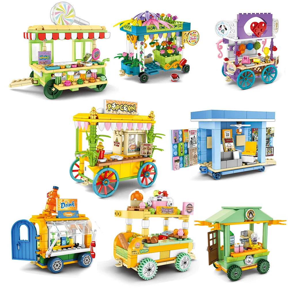 mini city street newsstand ice cream hot dog vegetables street mobile car vendors compatible legoingle city building block toys