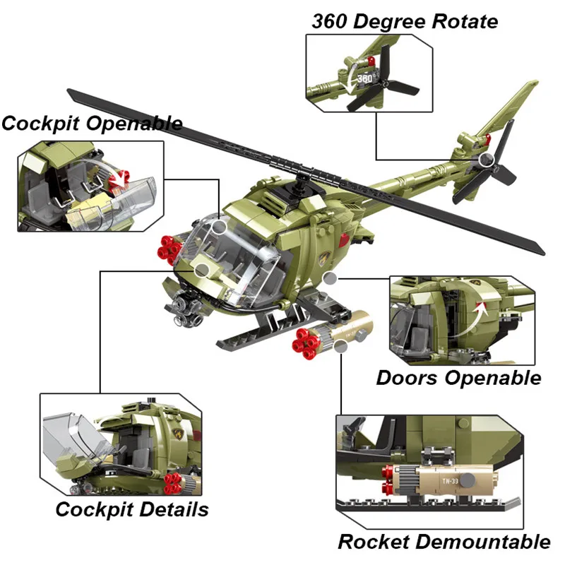 | XINGBAO 0601206013 Military Army Seires Assault Helicopter Jeep Missle Vehicle Building Blocks Educational Bricks Kids Toys |