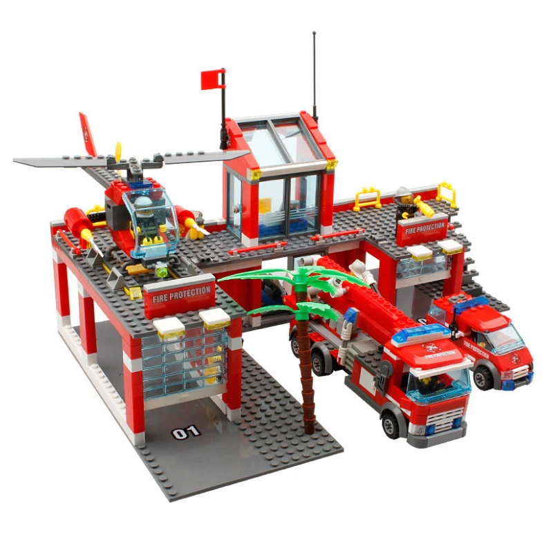 774pcs Fire Station Model Building Blocks Compatible Legoing City Construction Firefighter Truck Enlighten Bricks Toys Children