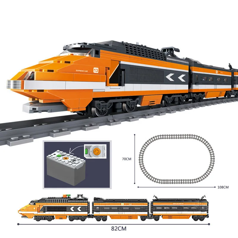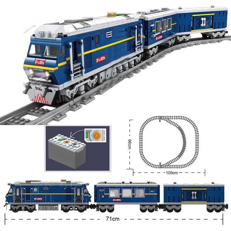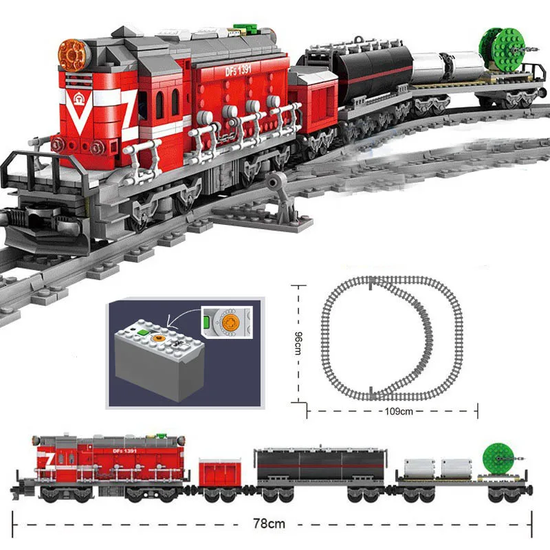 | QWZ NEW Legoes City Train Power-Driven Diesel Rail Train Cargo With Tracks Set Model Technic Building Blocks Toys for Children |